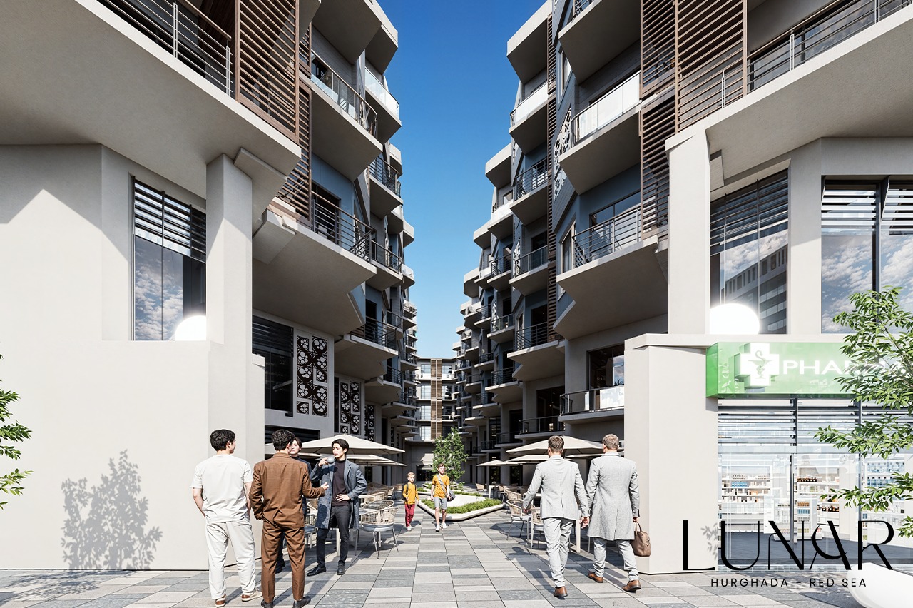 Apartment, 2 Bedrooms, 105 m² with Street View, luxury finishing inside a luxury resort with total area 2,600 m² in the Hurghada downtown on Old Sheraton Road, next to Marriott Hotel, opposite Old Vic Beach, and only steps from El Mohamady Howaidak Square – the beginning of Hurghada’s vibrant Touristic Promenade.