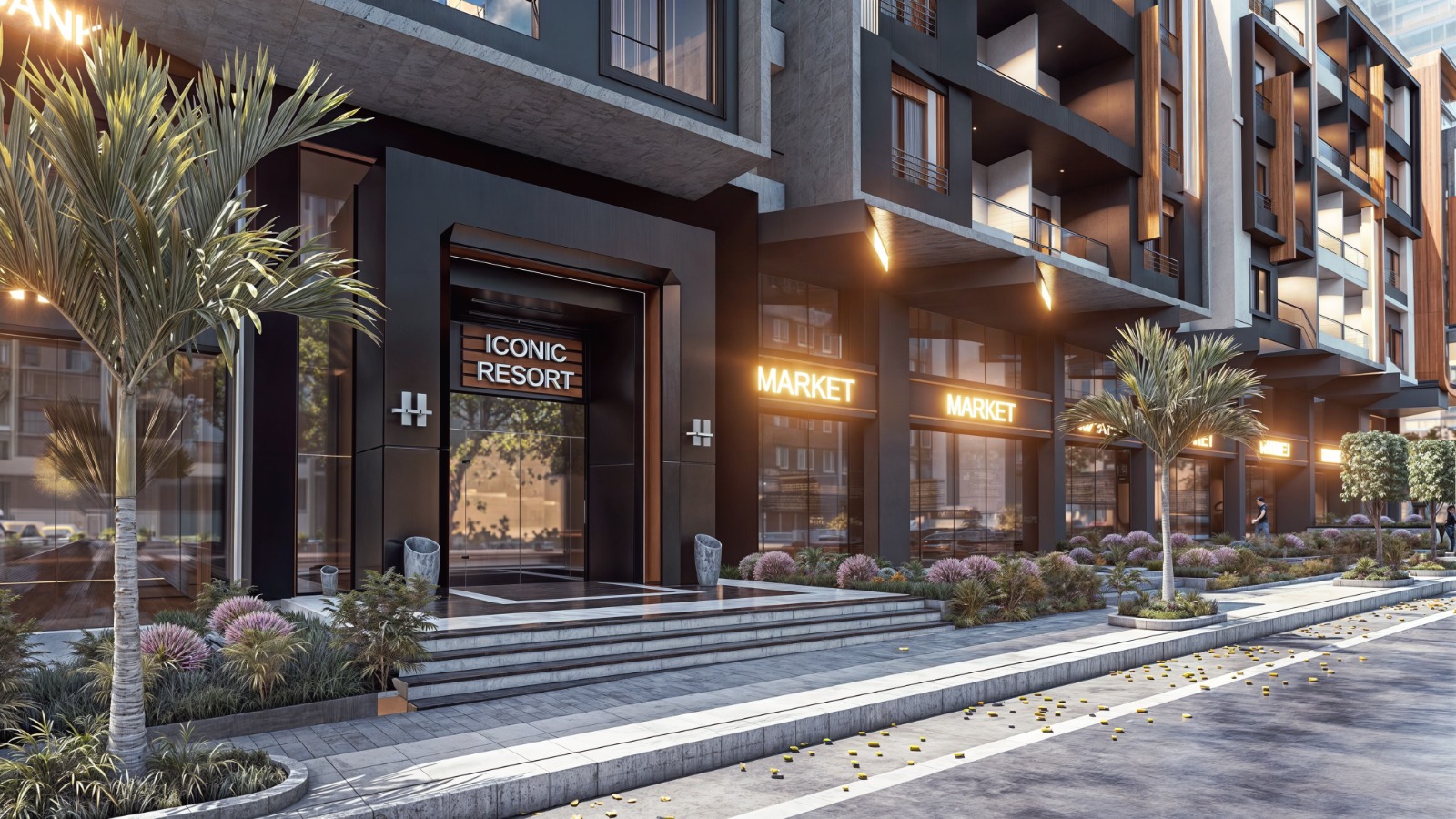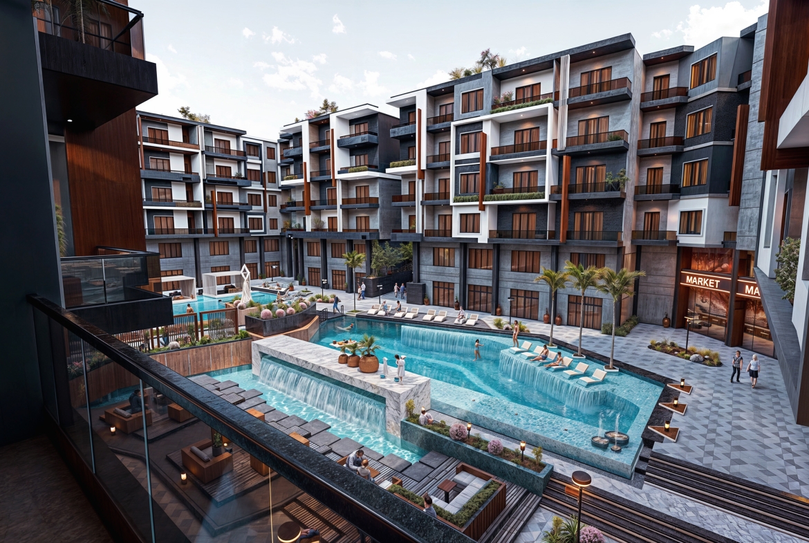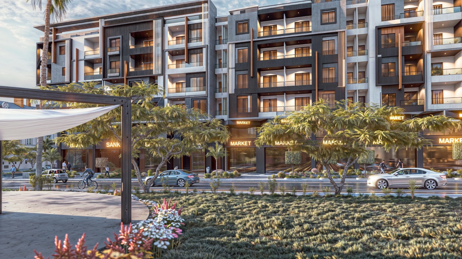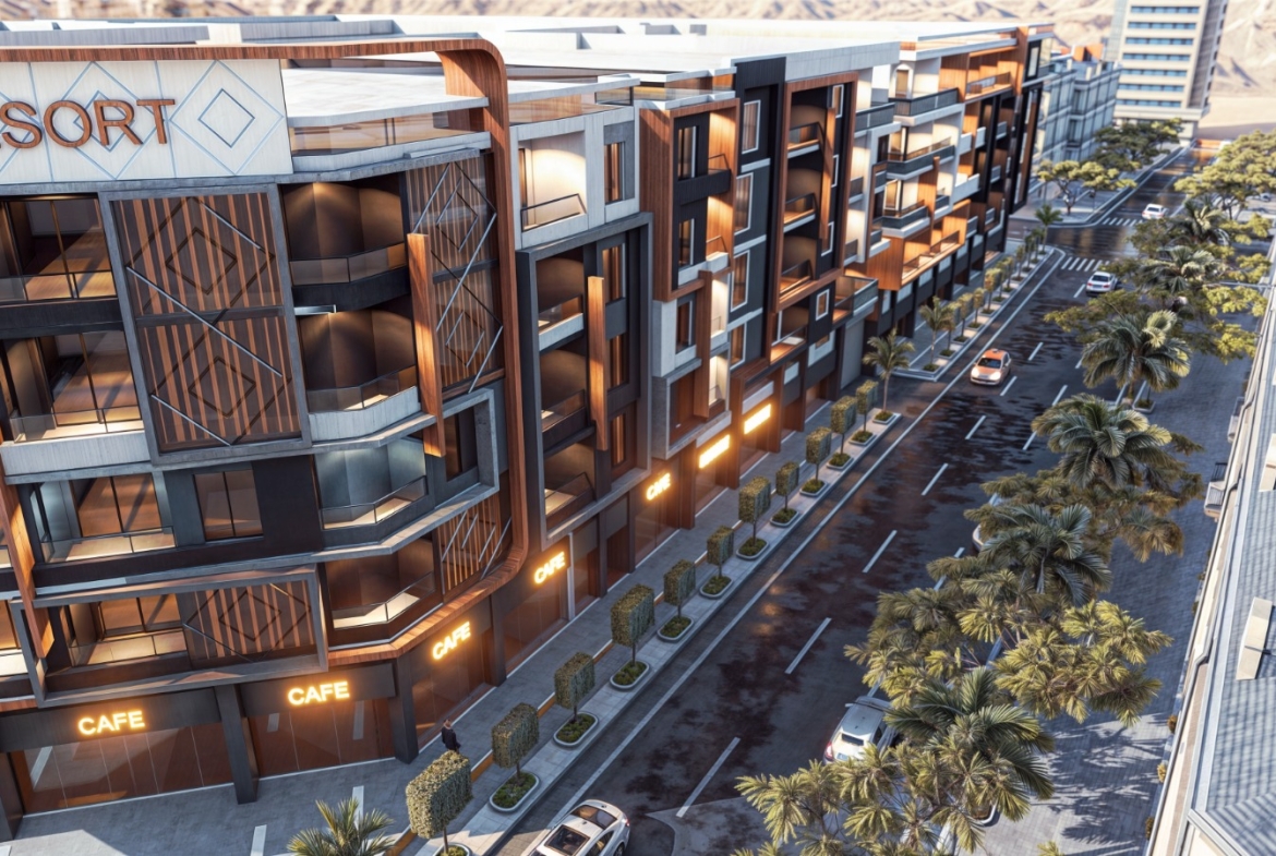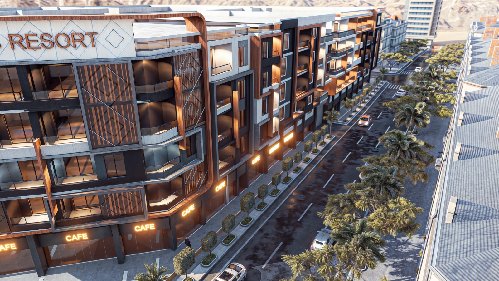 Apartment, 1 Bedroom, 71 m² with street & mountain view, luxury finishing inside A luxury resort in the Hurghada downtown on El Hadaba Road between Tourist Hurghada promenade and Sheraton St., with total area 7,200 m² with a carefully planned layout, built-up on 60% only from total size (Ground and 4 typical floors, elevators for all units) and 40% landscaped gardens, pools, and open areas. offers a seamless blend of residential living, Tourist, and commercial, all in one vibrant.
