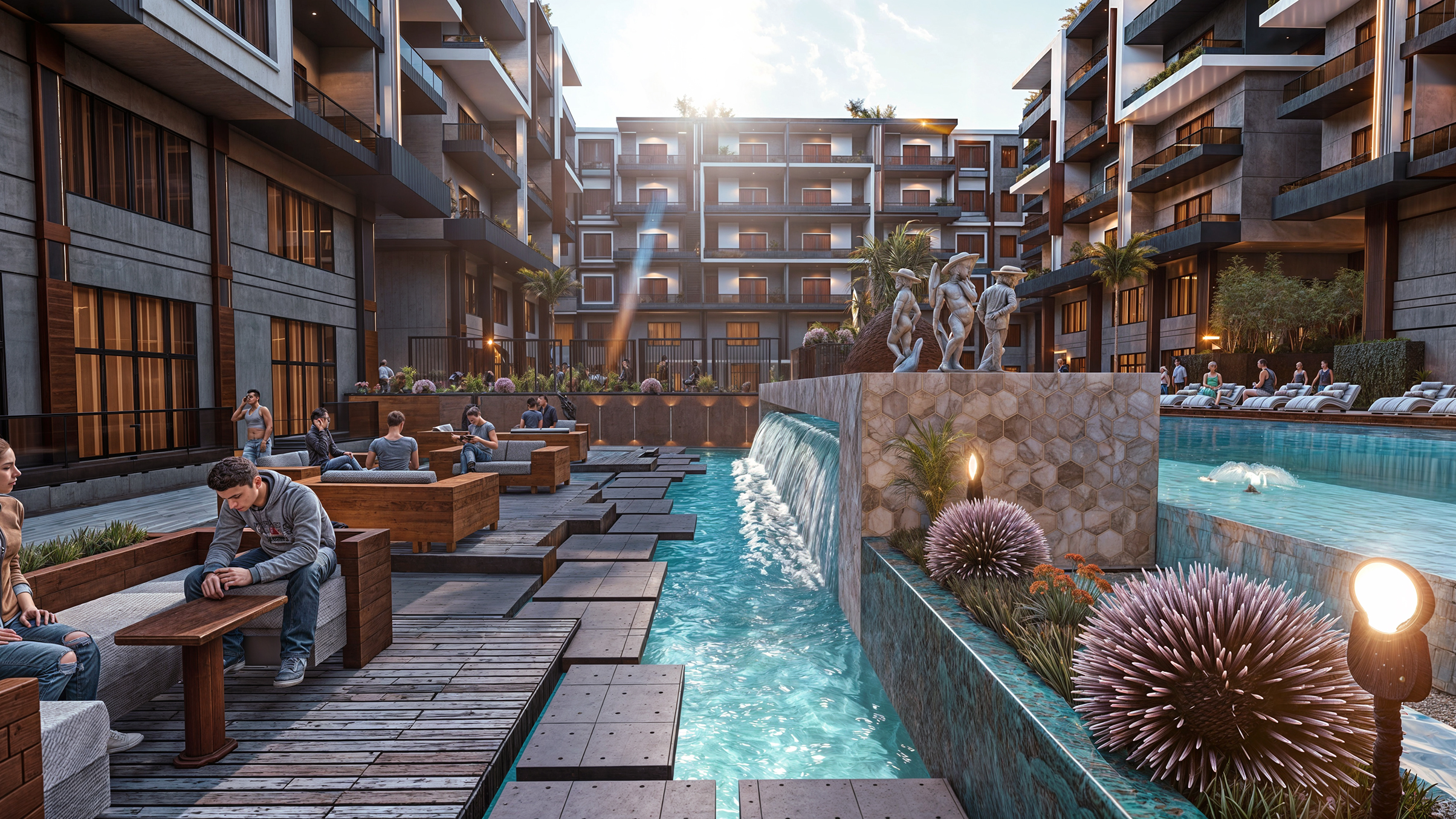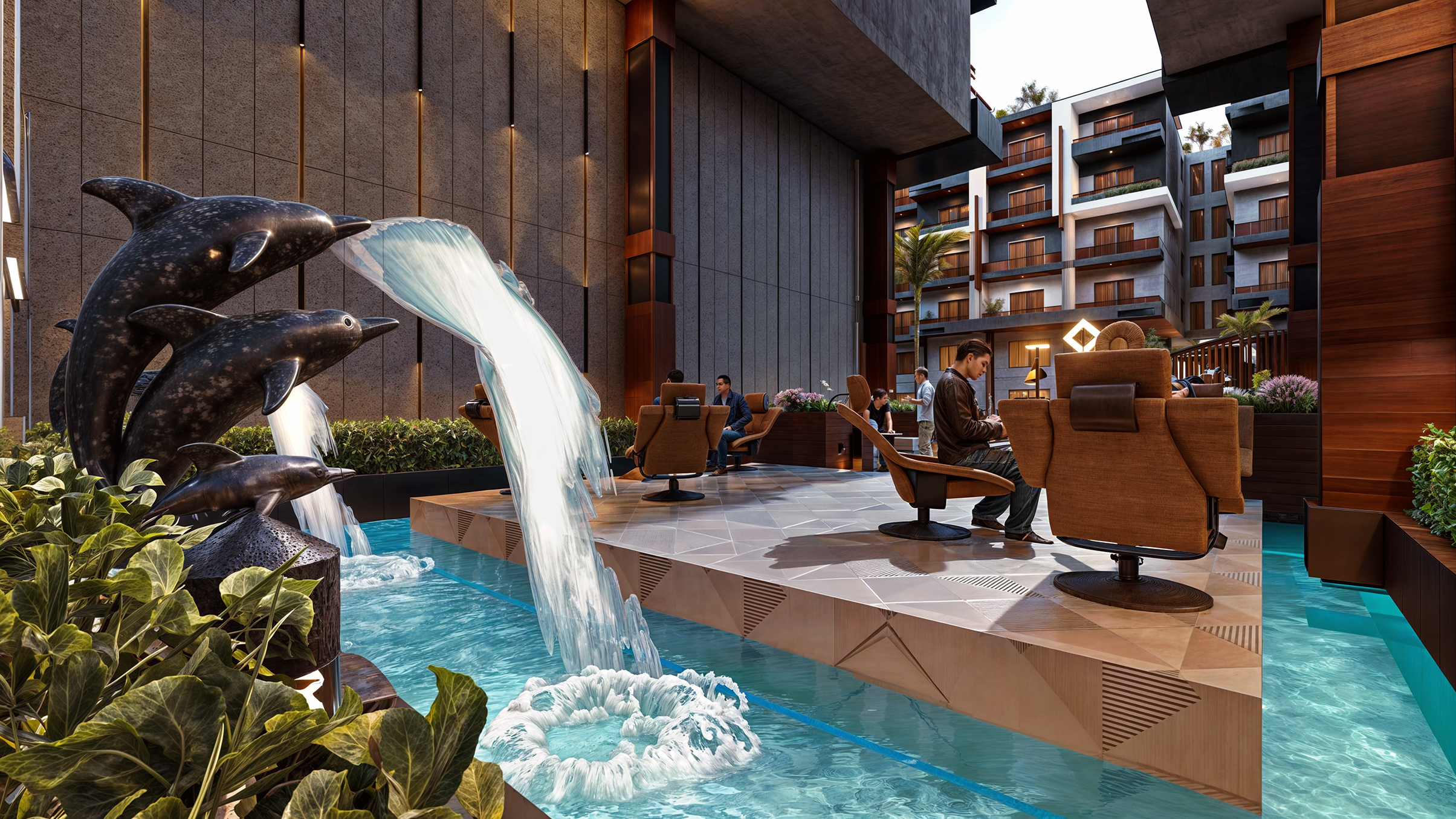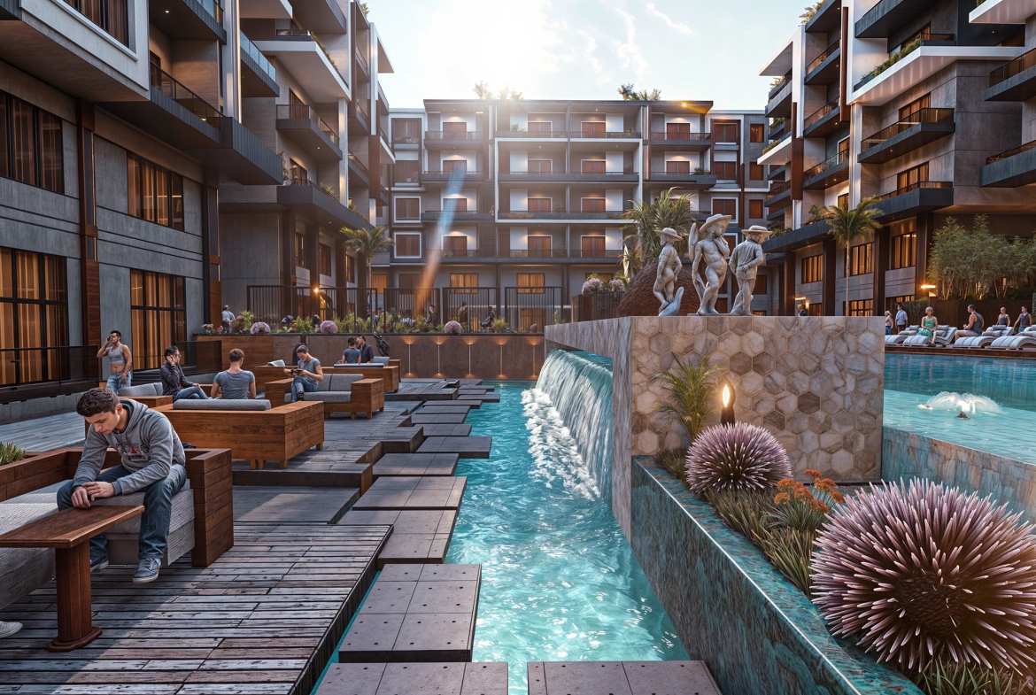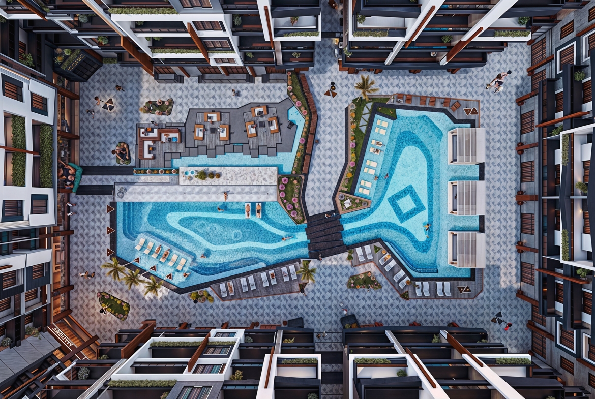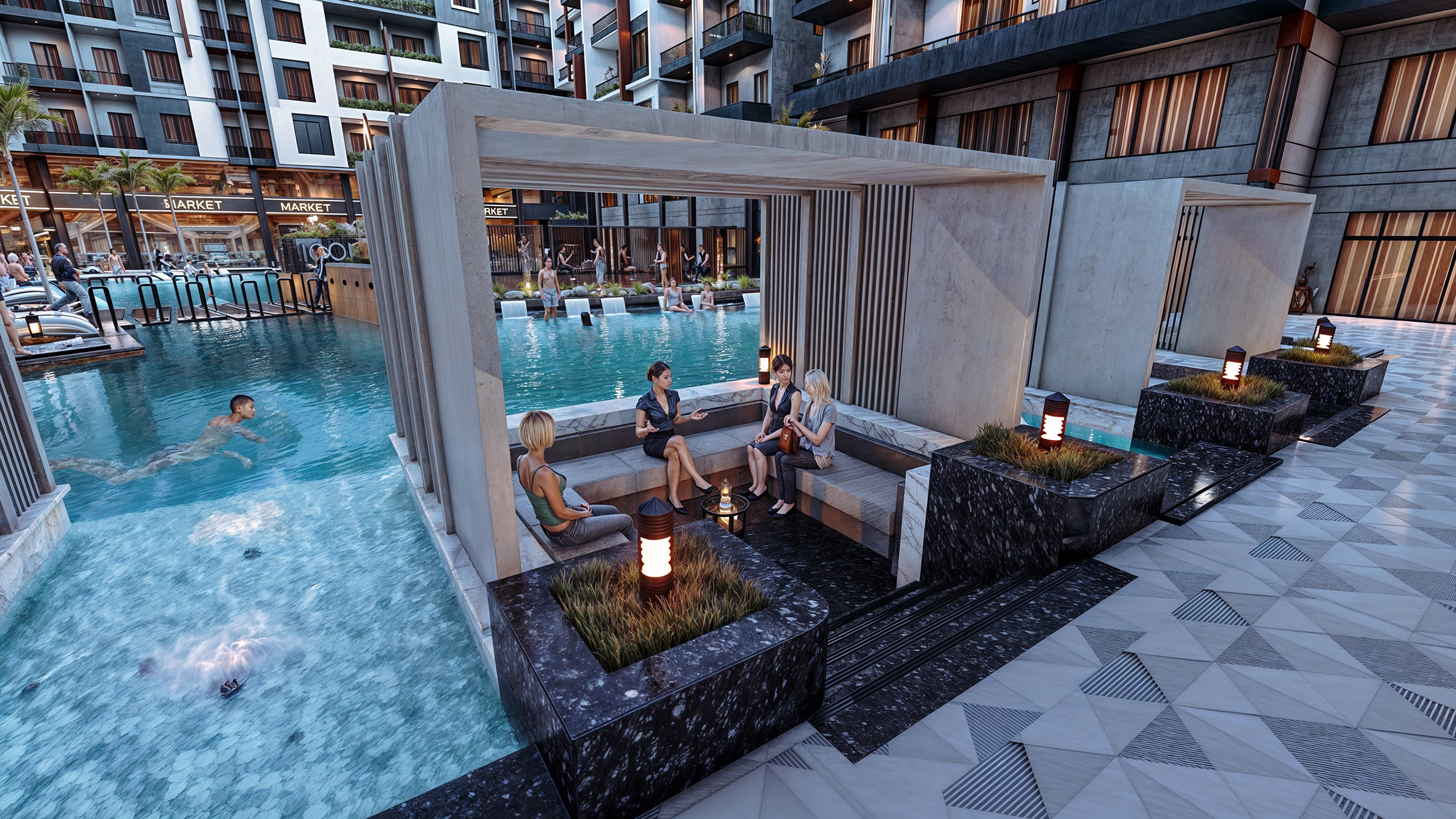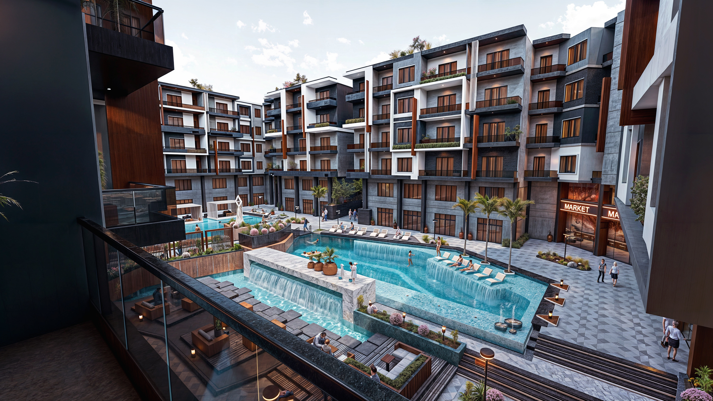 Apartment, 1 Bedroom, 71 m² with street & mountain view, luxury finishing inside A luxury resort in the Hurghada downtown on El Hadaba Road between Tourist Hurghada promenade and Sheraton St., with total area 7,200 m² with a carefully planned layout, built-up on 60% only from total size (Ground and 4 typical floors, elevators for all units) and 40% landscaped gardens, pools, and open areas. offers a seamless blend of residential living, Tourist, and commercial, all in one vibrant.