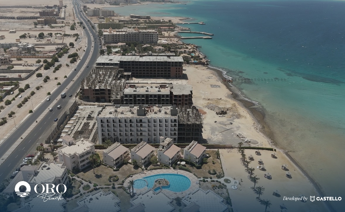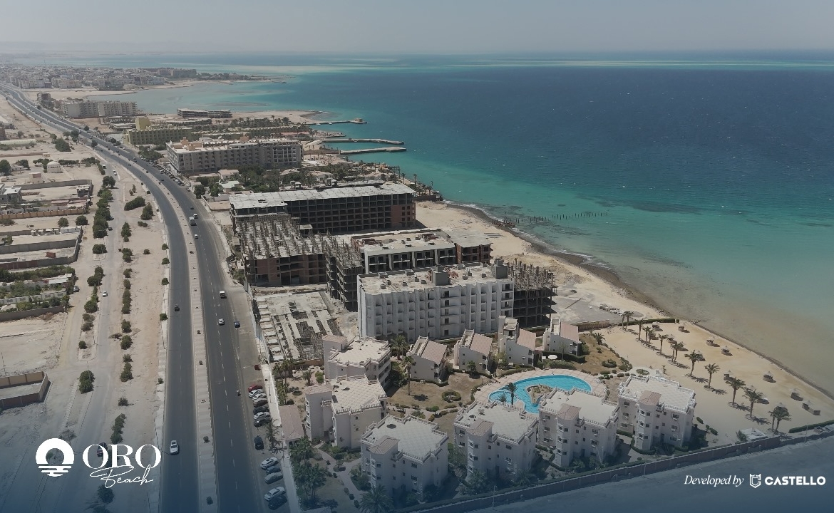 Studio, 47 m² with Sea View, luxury finishing inside Beachfront resort Front of Mubark 7 Villa, Al Ahyaa Road, Hurghada, Red Sea, with total area 8,800 m² with a carefully planned layout; built-up on 60% only from total size (Ground and 4 typical floors, elevators for all units) and 40% landscaped gardens, pools, and open areas. offers a seamless blend of residential living, Tourist, and commercial, all in one vibrant.